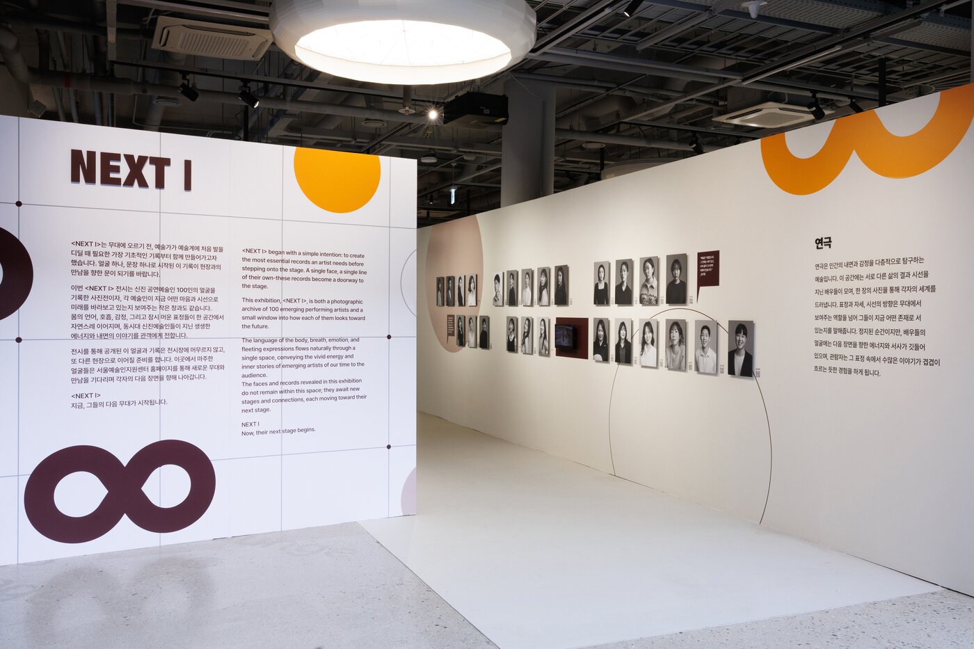 전시장에는 공연예술계에 첫발을 내딛는 새로운 예술가 100인의 프로필 사진과 함께, 각자의 정체성을 담은 문장과 키워드가 아카이브 형태로 배치된다. 관람객은 한자리에서 미래 공연예술을 이끌어갈 주역들의 얼굴과 활동 정보를 살펴볼 수 있다.
